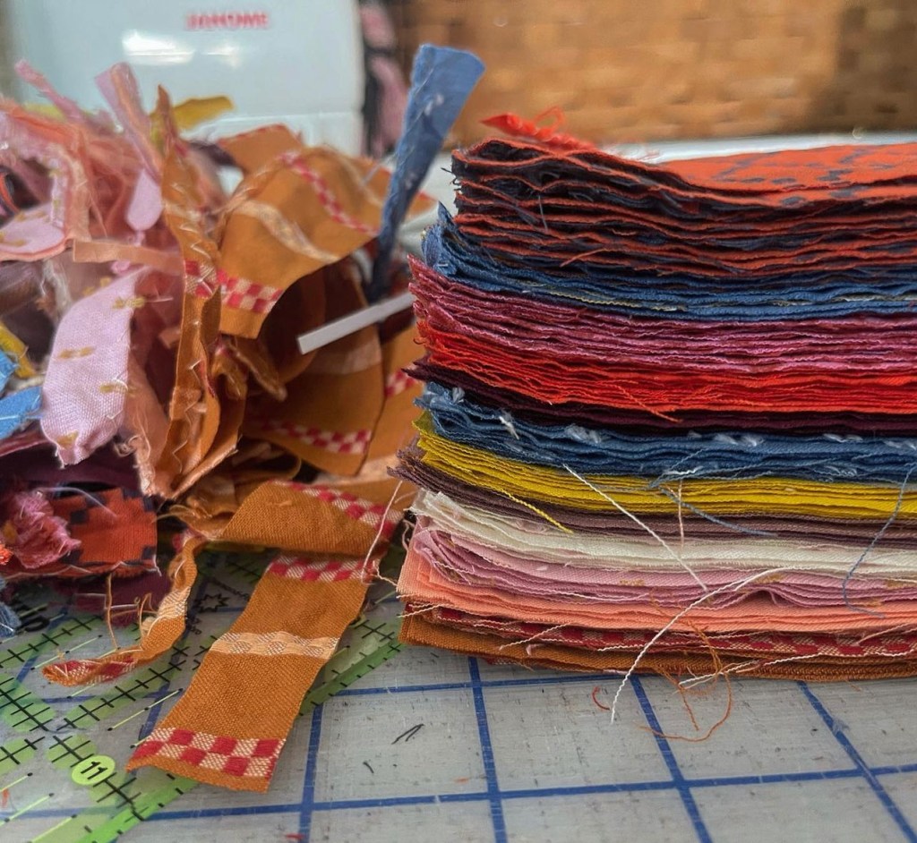 The fabric that’s being marketed as woven goes so well with quilting cotton because, well, they are the same thing. One has a higher thread count, giving the fabric a sturdier feel when cutting and sewing. The wovens that people are purchasing from fabric designers and companies has the pattern woven into it in different color threads, with a lower thread count. Thus giving it a more fragile feel. A lot of times it’s yarn dyed or hand dyed. Typically quilting cotton is woven, and then the design or pattern is printed on.
