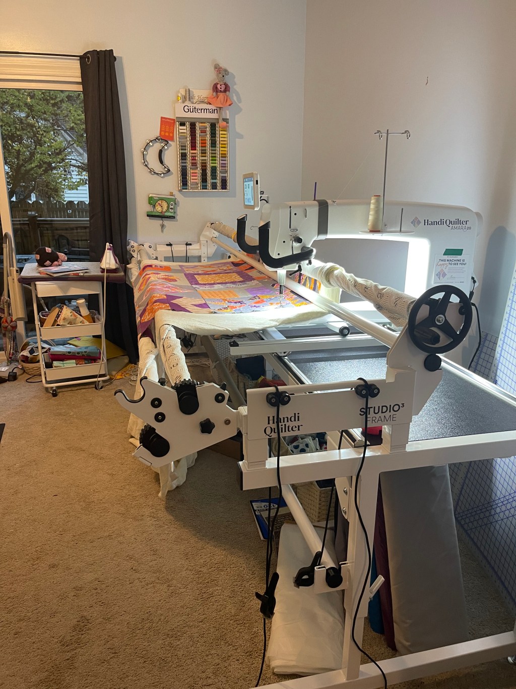 I knew for my personal needs and space, that Amara by HandiQuilter was going to be my girl! She’s a little bigger than I think I realized once you save the space around the machine needed (and I got the 10 foot frame!) , but I made it work in my space. I’m one week into learning about her nuances and I have learned A LOT (it’s not really the same as a sewing machine like I thought it was). I am so excited for this adventure and I love being able to share it with you!